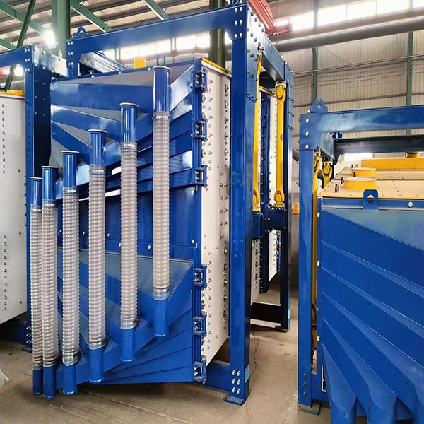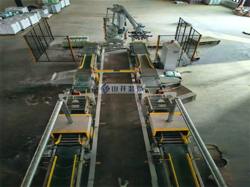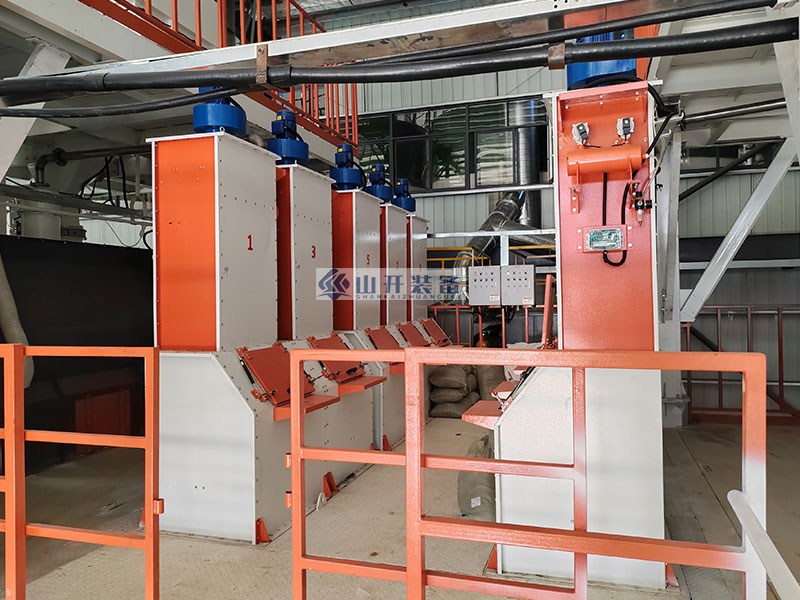 在山开装备的生产车间内,一台台崭新的阀口包装机正整齐地排列着,等待着被装载上...